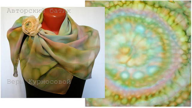 | Моё любимое направление в батике - шибори и графичная роспись. Работаю по шелку, хлопку, вискозе. Рисую картины по шелку и канве. Шью одежду из окрашенной мной ткани. Связаться со мной можно на сайте или по адресу почты vera.kurnosova(собака)gmail.com