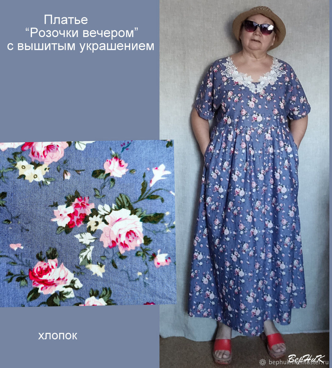 | Платье "Розочки вечером" из сорочечного хлопка. ОГ 124 ОТ 114 ОБ 192 Длина платья 137 см